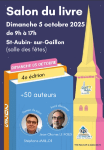 J’ai le plaisir d’être invité pour dédicacer mes 3 derniers livres, le dimanche 5 octobre au salon du livre qui se tiendra à la salle des fêtes de St Aubin-sur-Gaillon (27) de 10h à 18h00.