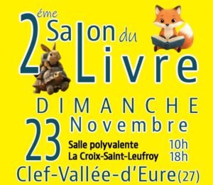 J’ai le plaisir d’être invité à la 2ème édition du Salon du Livre à La Clef Vallée d’Eure, qui se tiendra le dimanche 23 novembre de 10 h à 18 h à la salle des fêtes, 13 rue de Louviers 27490 la Croix St Leufroy.