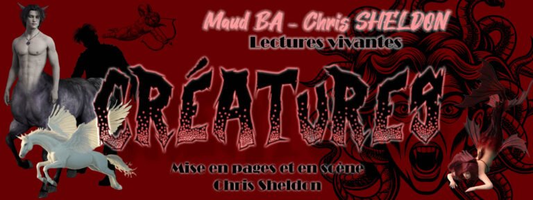 Je serai moi-même présent en dédicace avec mes trois livres, mais principalement le matin, car l’après-midi, à 15h00, je présenterai mon nouveau spectacle de Lecture Vivantes « Créatures« , accompagné de Maud Ba, destiné à un public adulte.